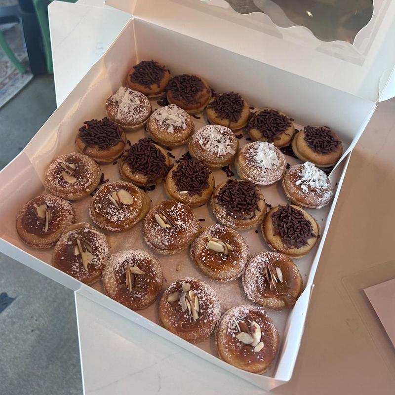 Box of 25 assorted donuts, 4g protein each, 1g sugar, 45 cal.